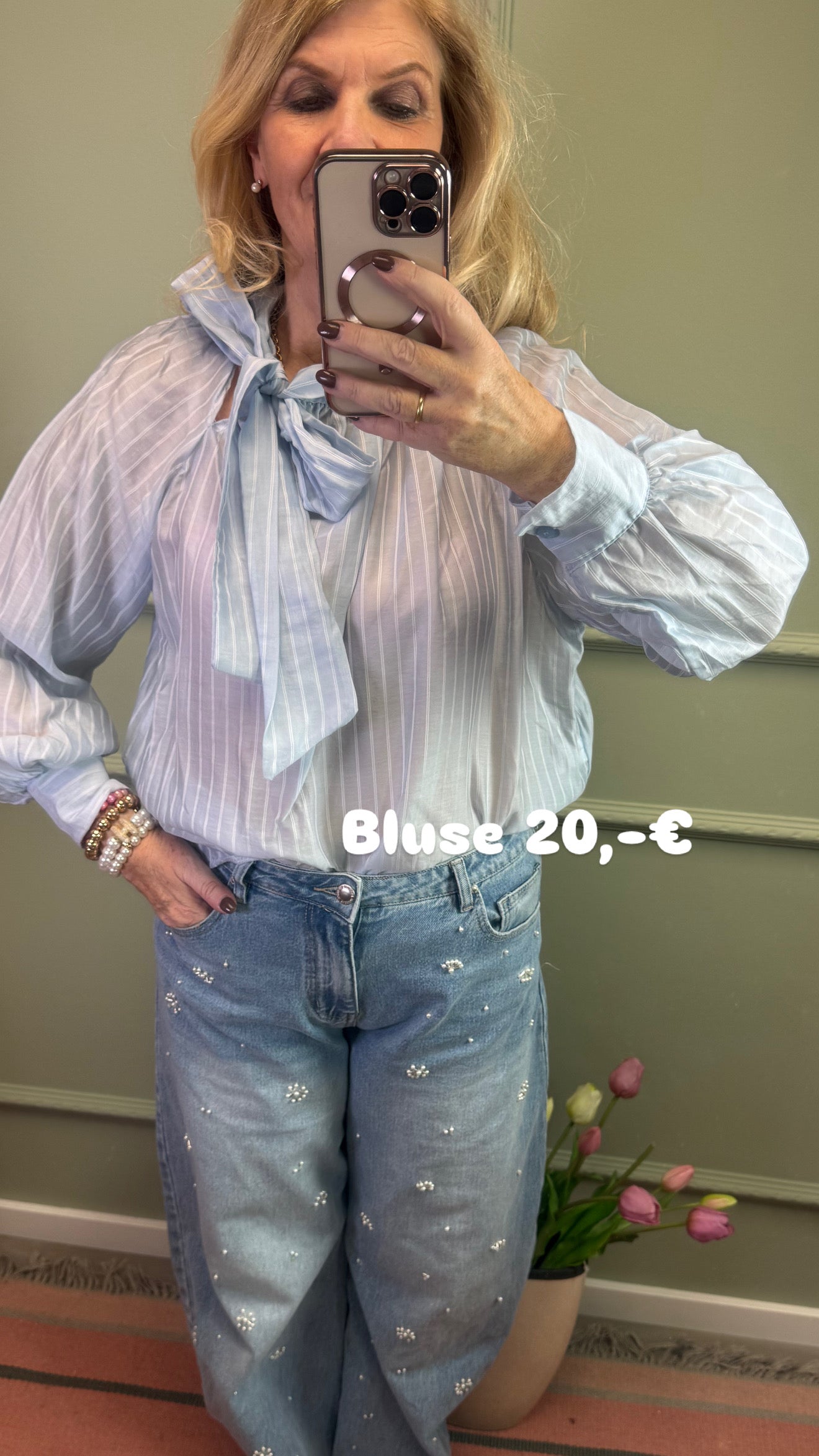 BLUSE MIT FEINEN STREIFEN UND SCHLEIFE