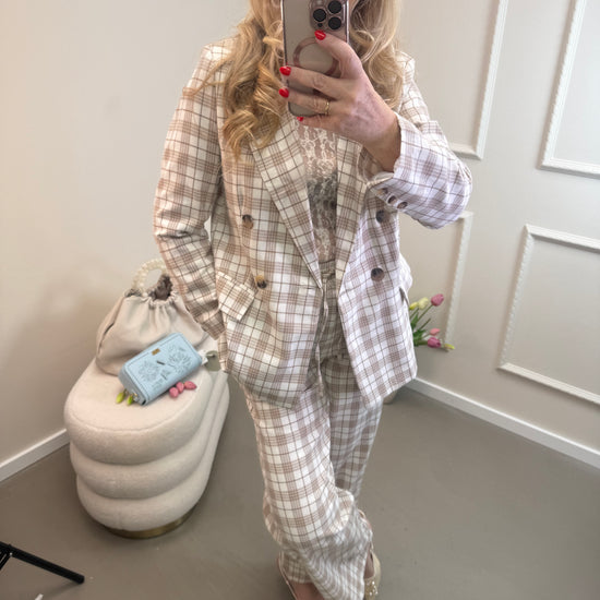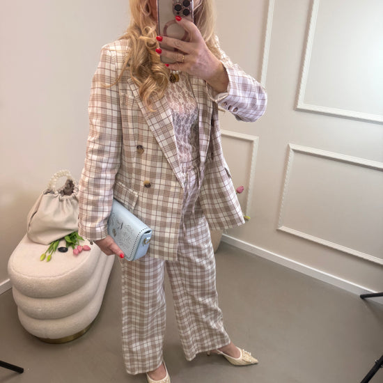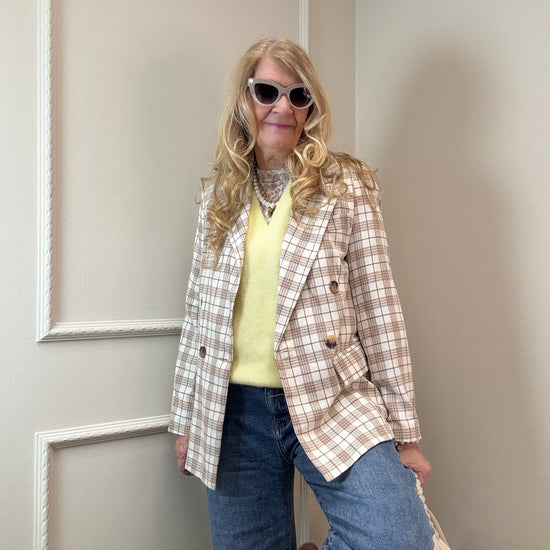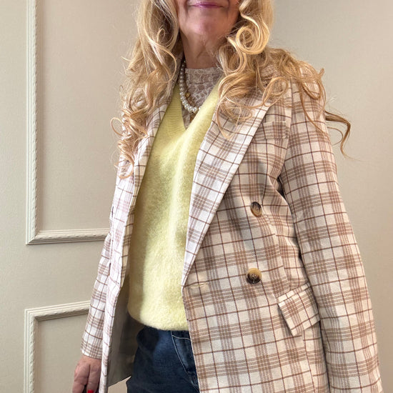 Karierter Blazer - leichter Doppelreiher, One Size. Perfekt als Kombi mit der karierten Hose. Aber auch super zur Jeans.